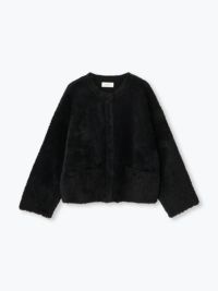 クルーネック、隠しスナップボタンですっきり見えの羽織です。