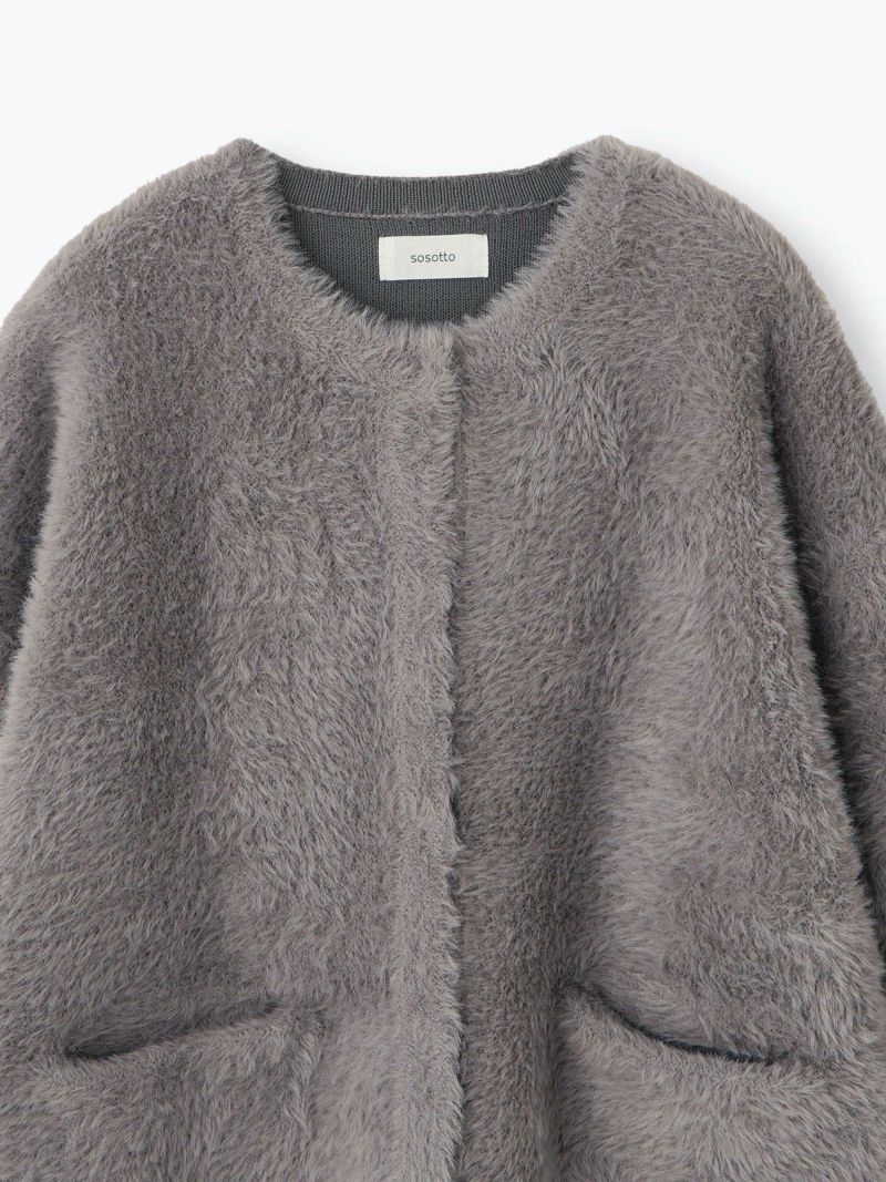 フォックス風の毛足のある糸を使用したニット。