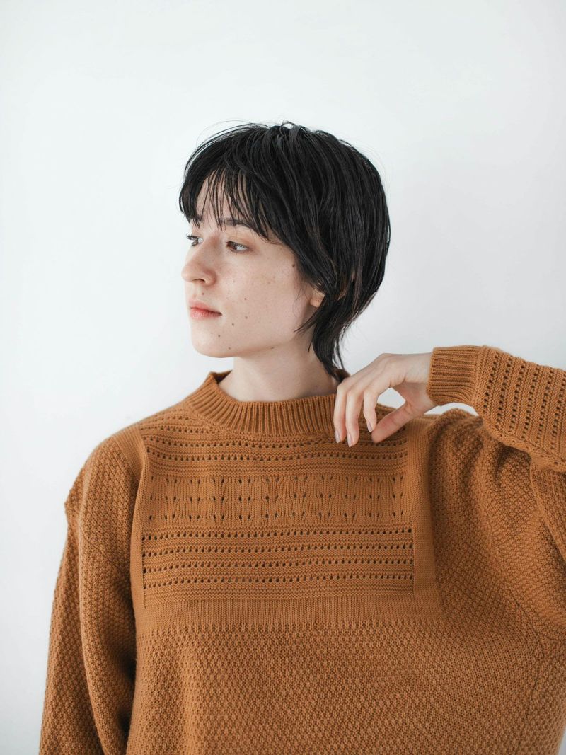 ボリュームのあるボトムスに合わせるのがおすすめ。