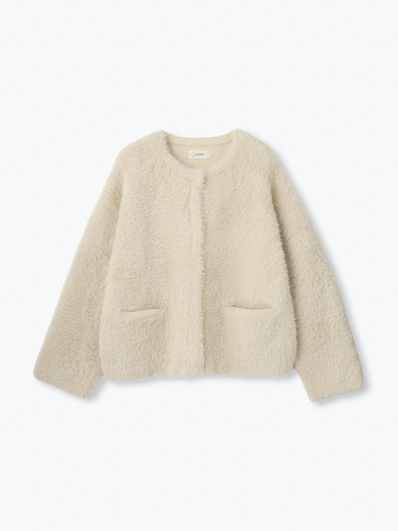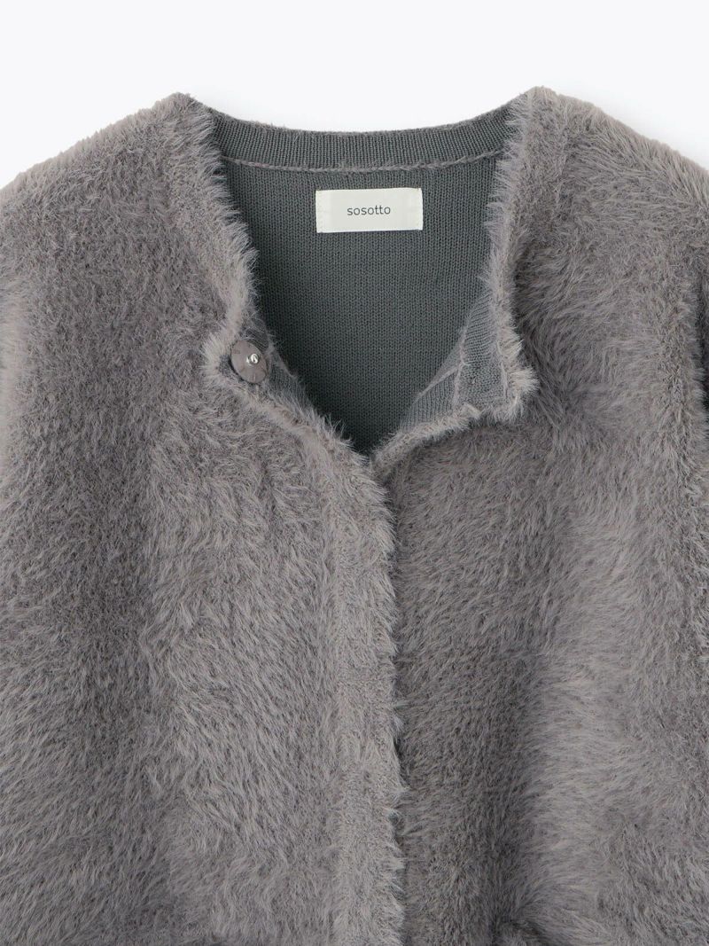 フォックス風の毛足のある糸を使用したニット。