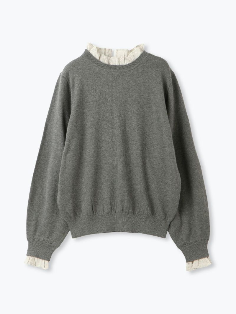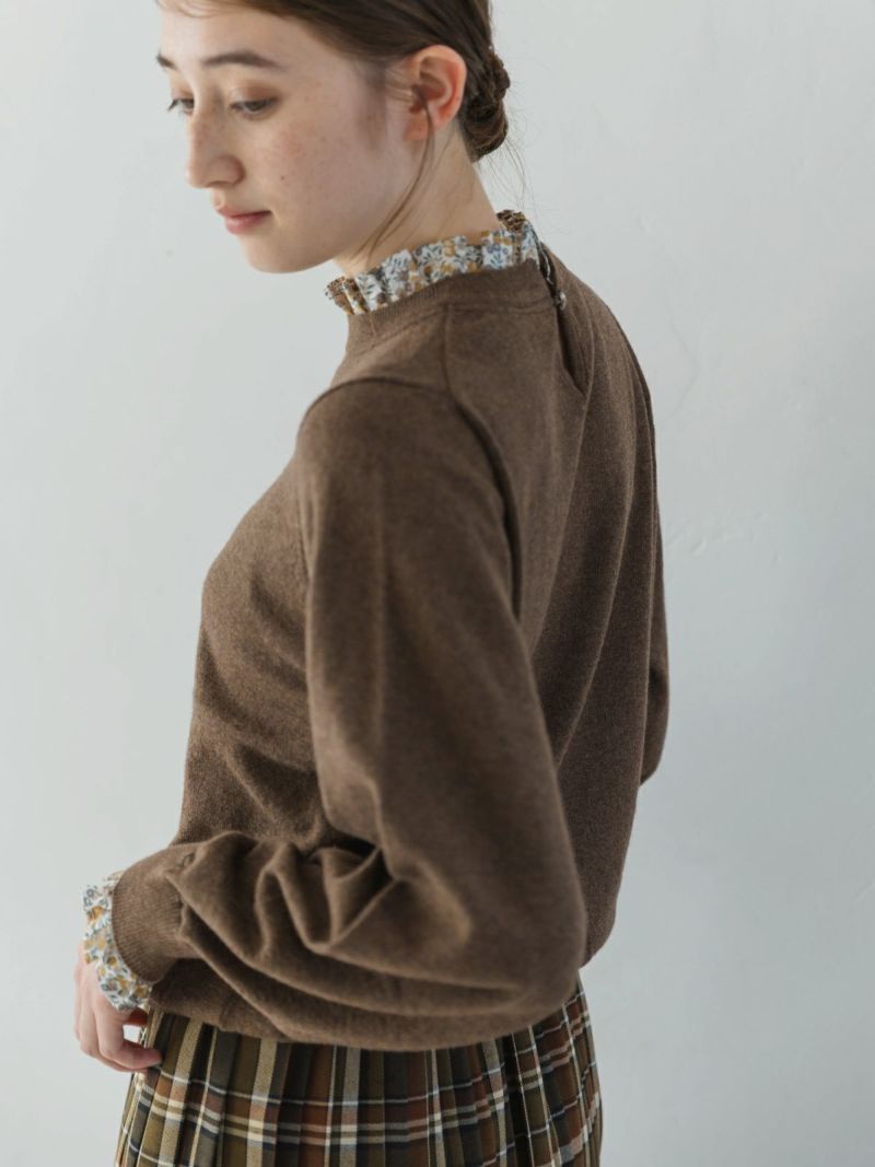 重ねたように衿周りと袖口にフリルをドッキングしました。