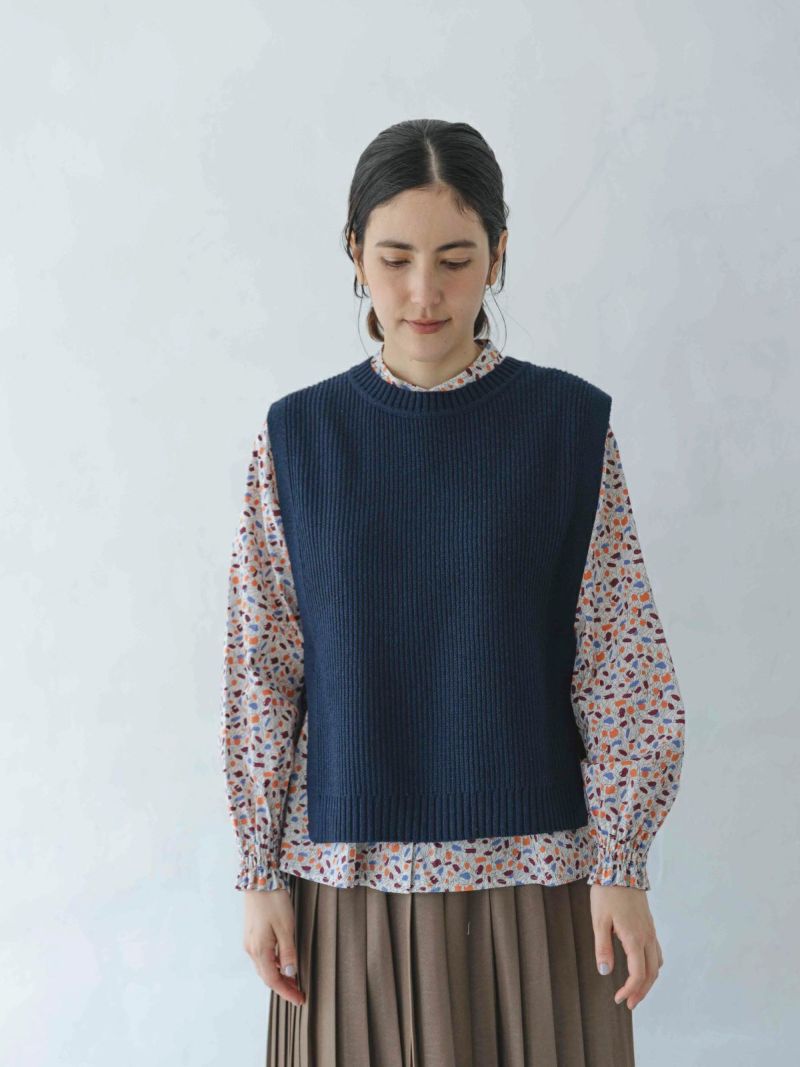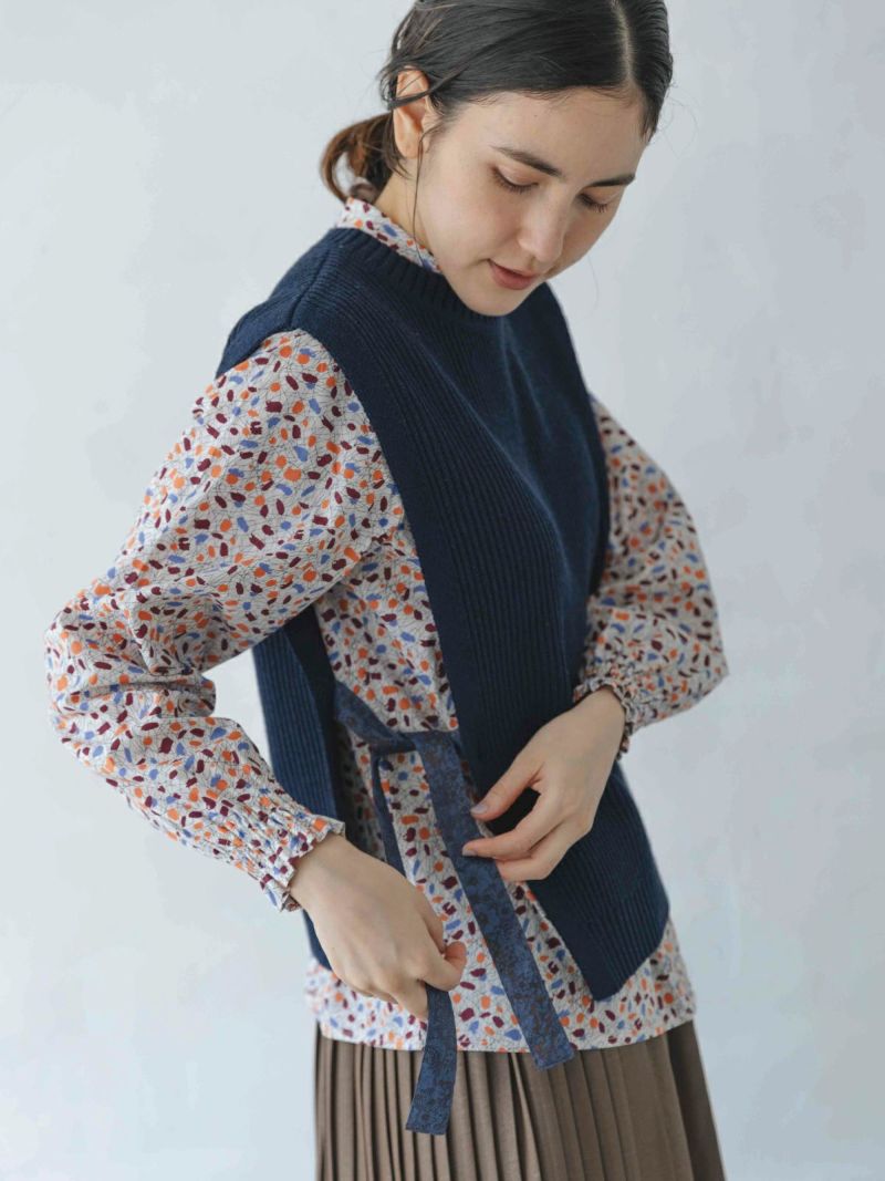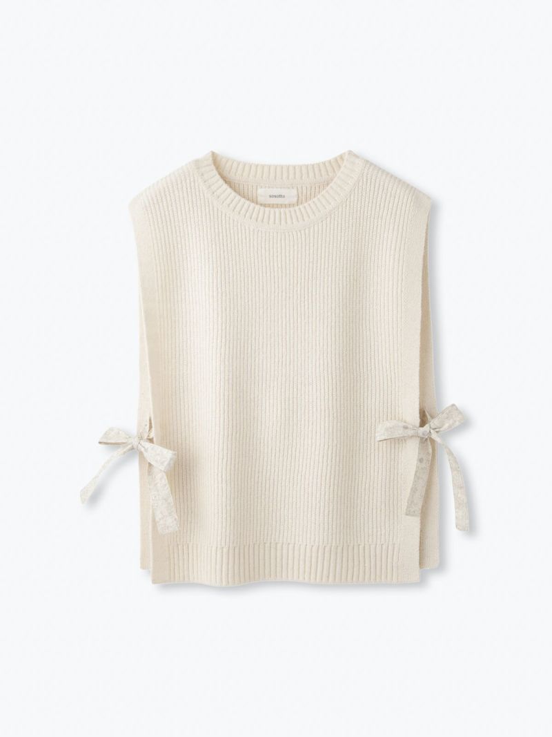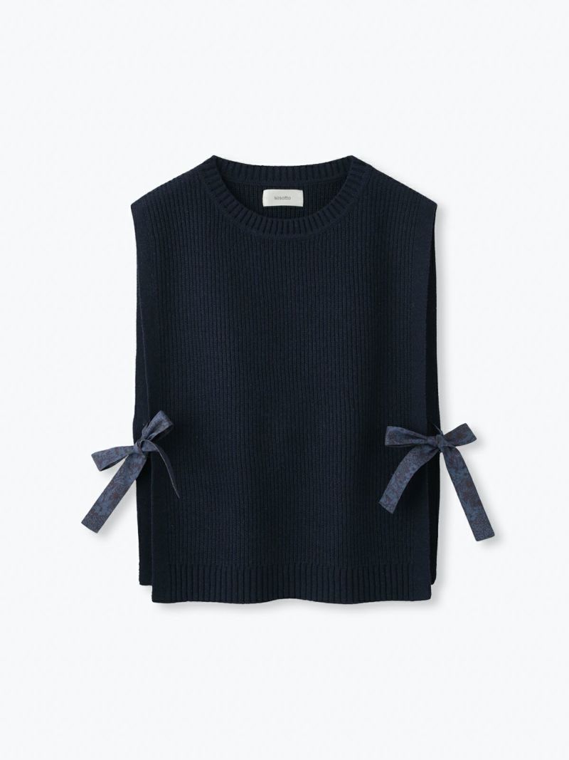 ?BLIBERTYタナローンのリボンが付いた片畦編みのベスト