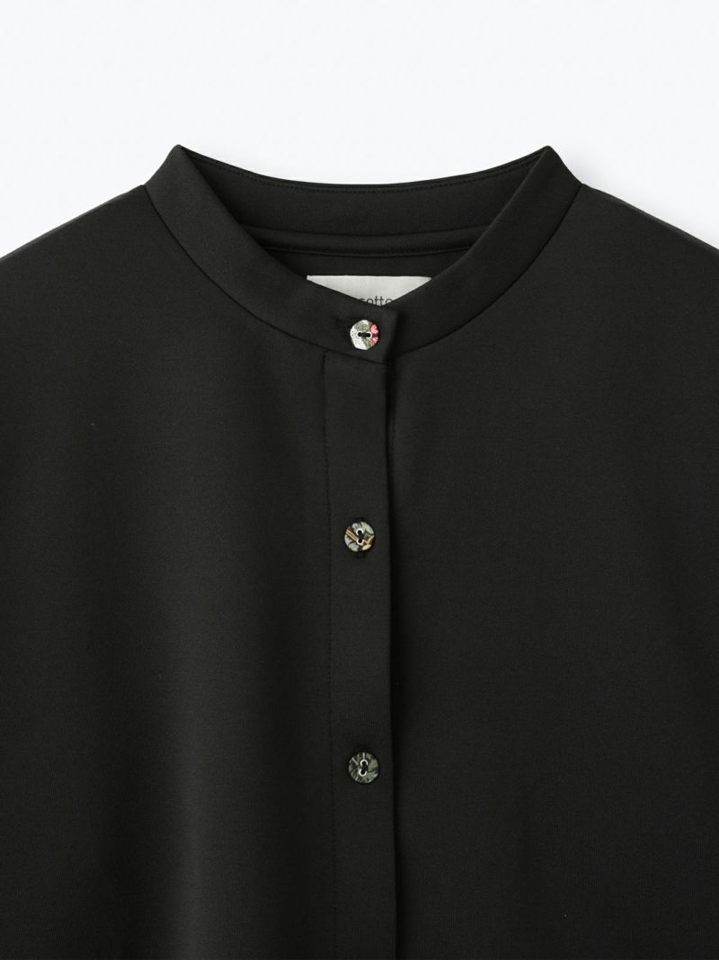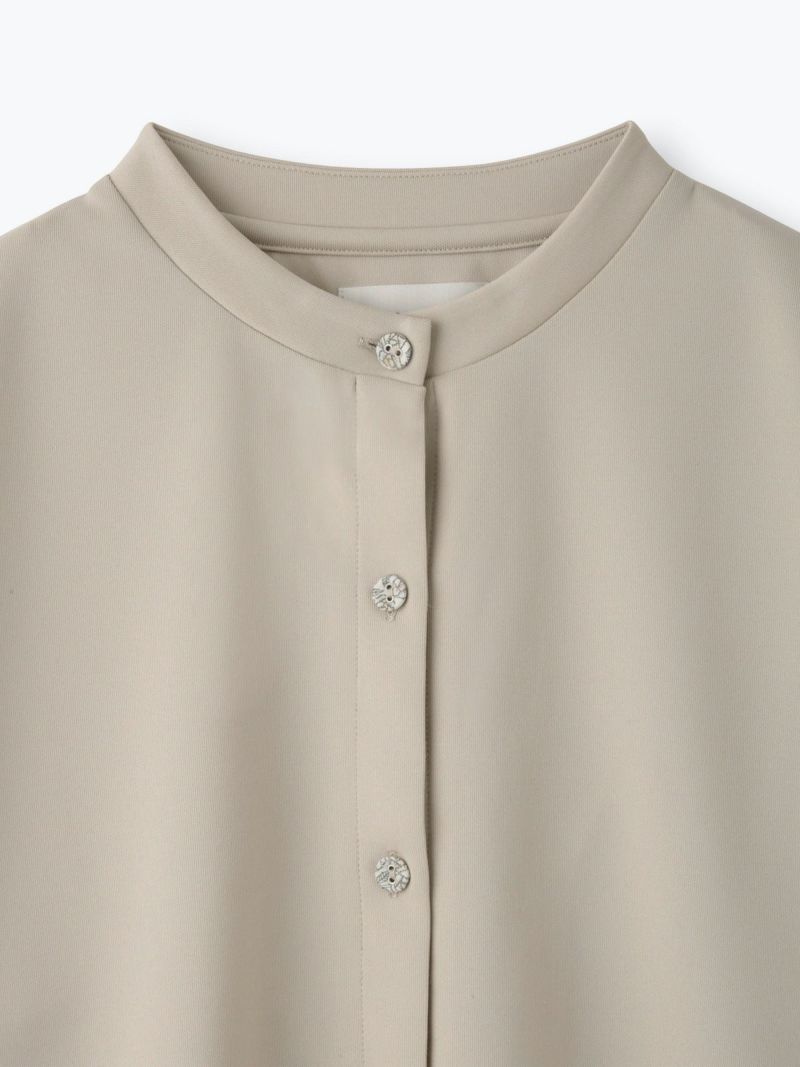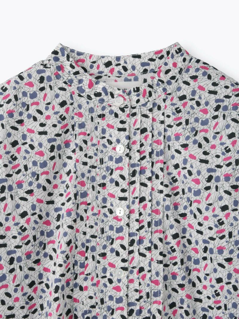 前身頃にピンタックを入れた前開きタナローンブラウス。