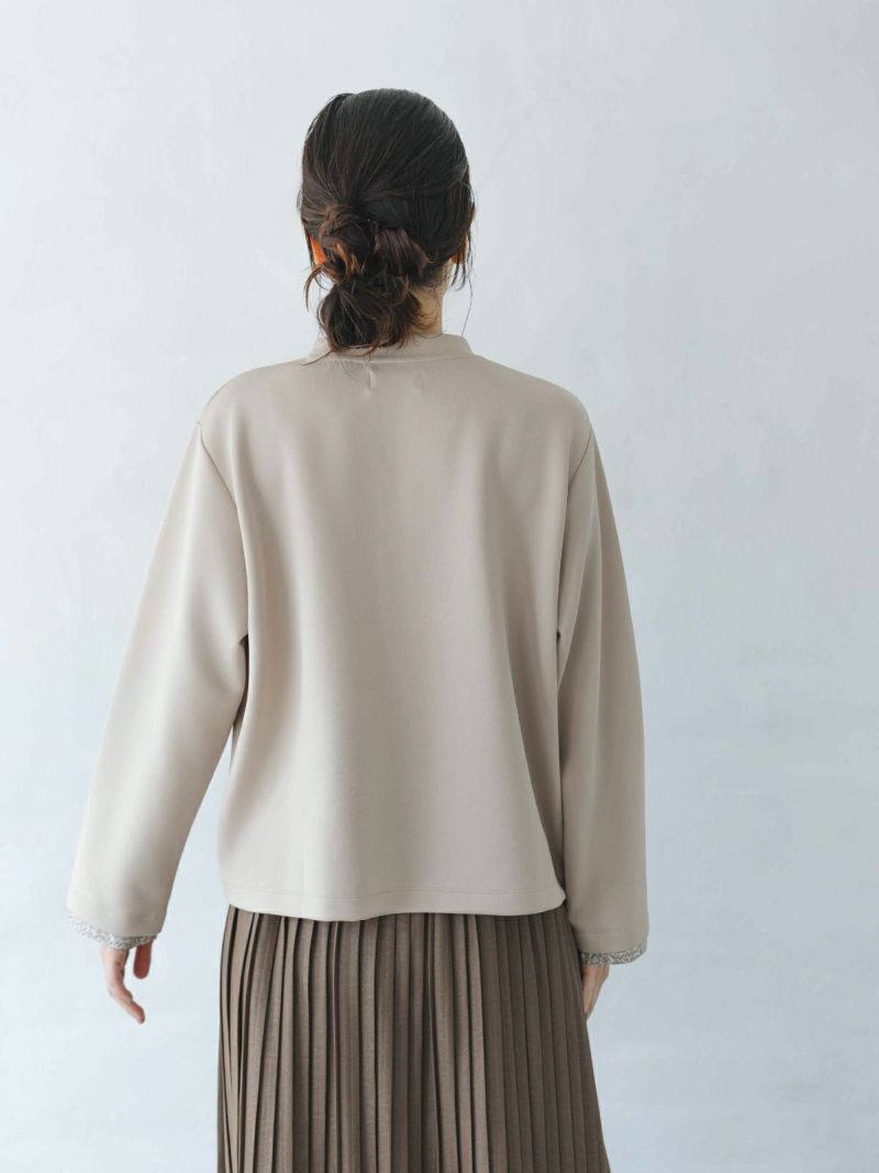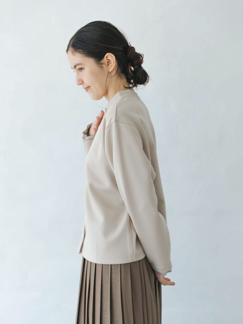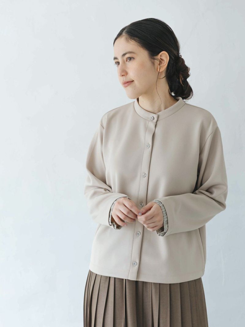 ?ALIBERTYくるみボタンのポンチ生地カーディガン