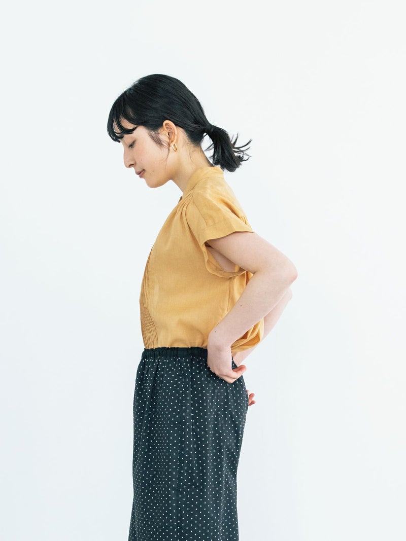 ポンデの夏の定番素材・ラミーコットンであしらった大人のピンタックブラウス。