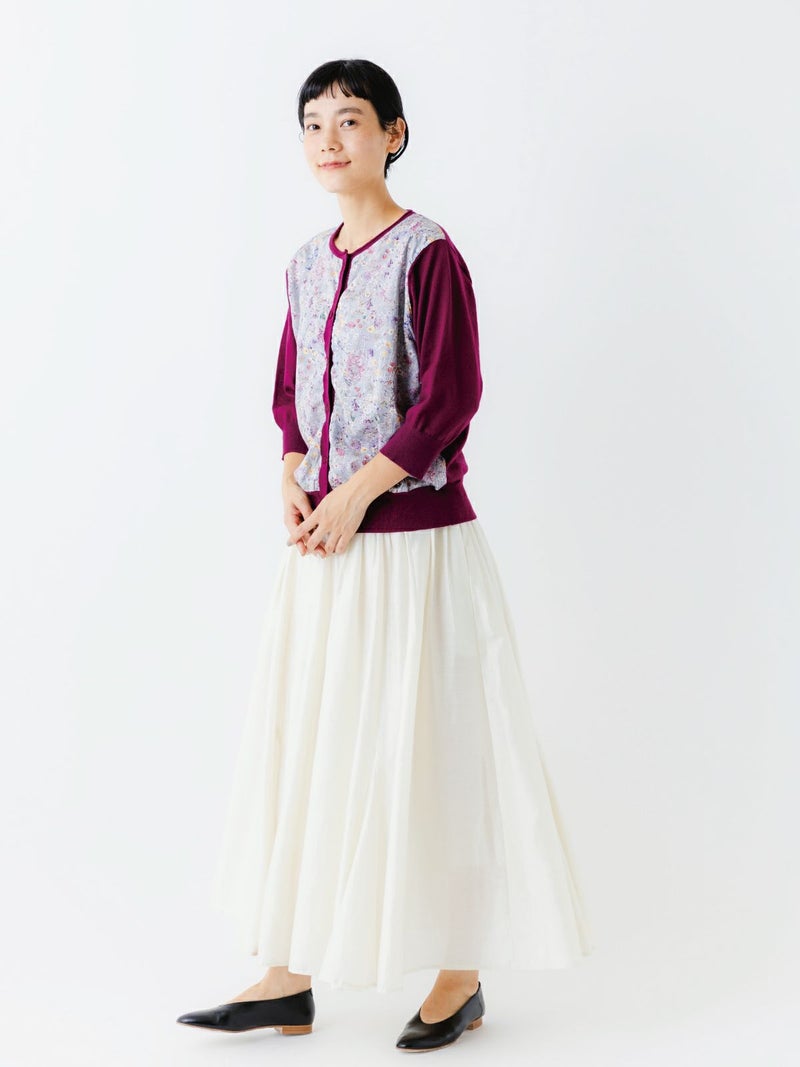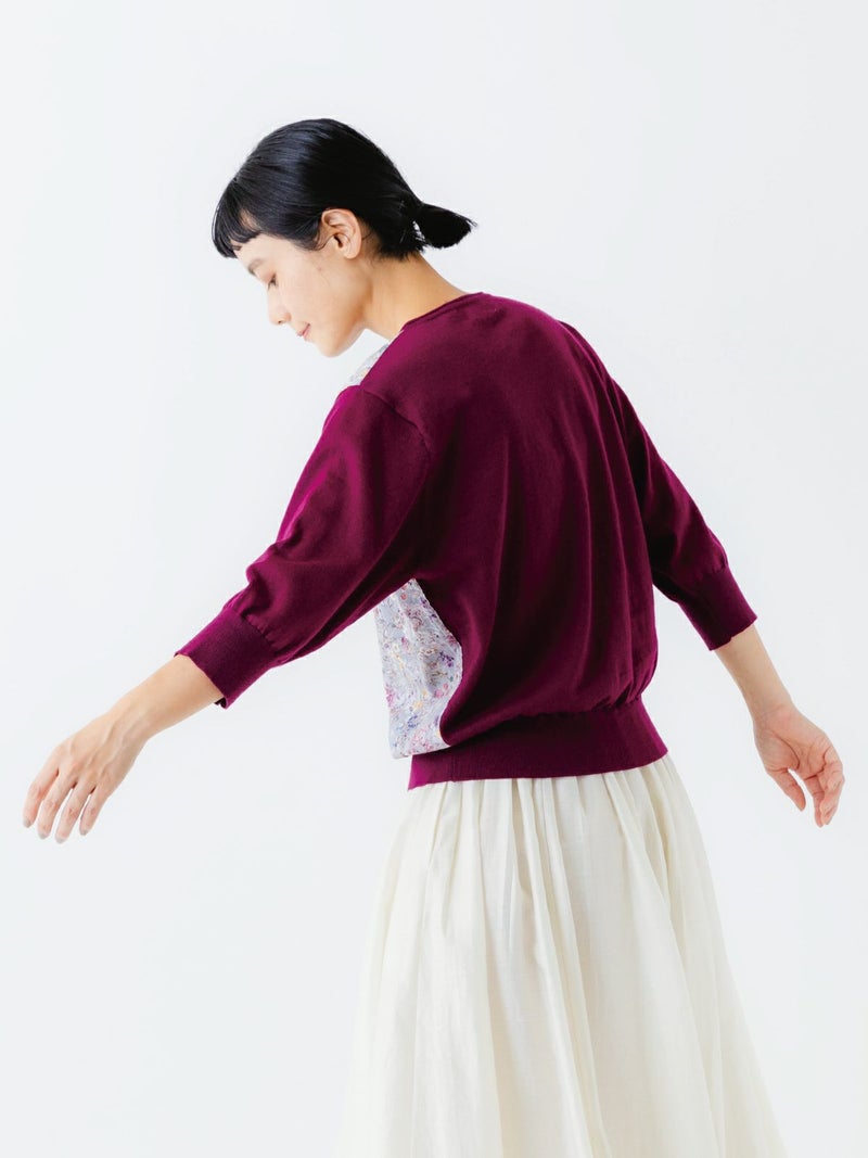 sosottoのアイコンでもあるリバティプリントとニットのドッキング。