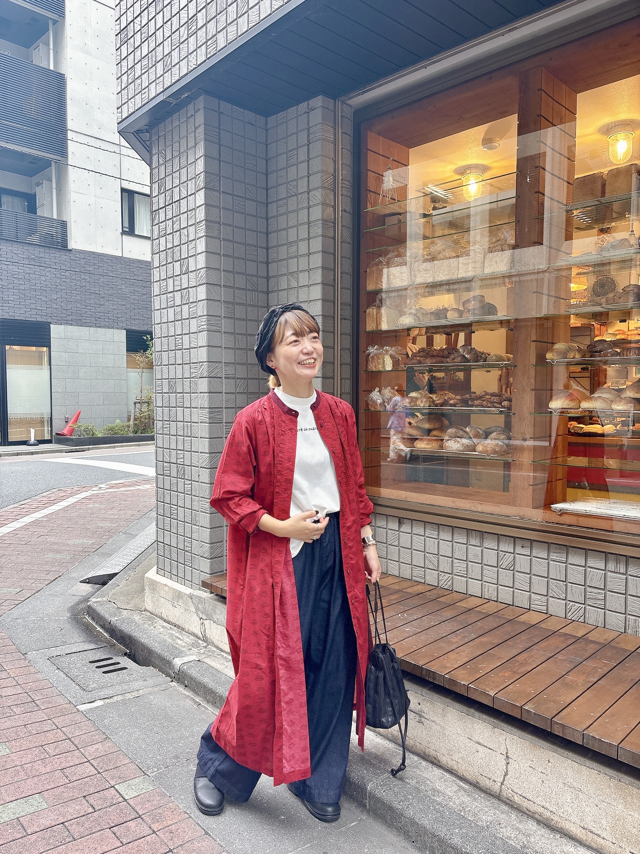 田中:今回は刺繍入りコーデュロイワンピースの前を開けて、羽織として