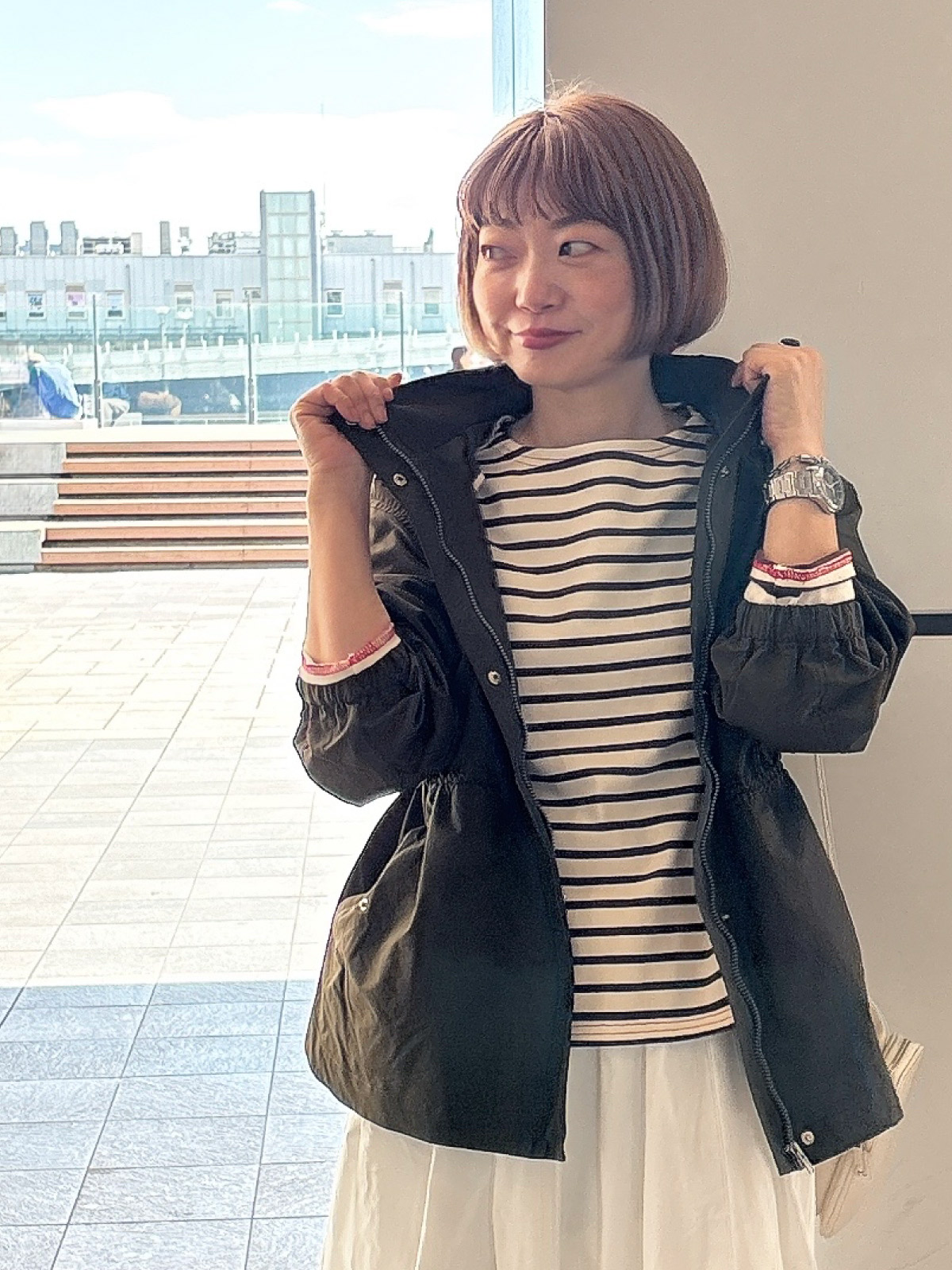 軽やかなスタイルに羽織りました。