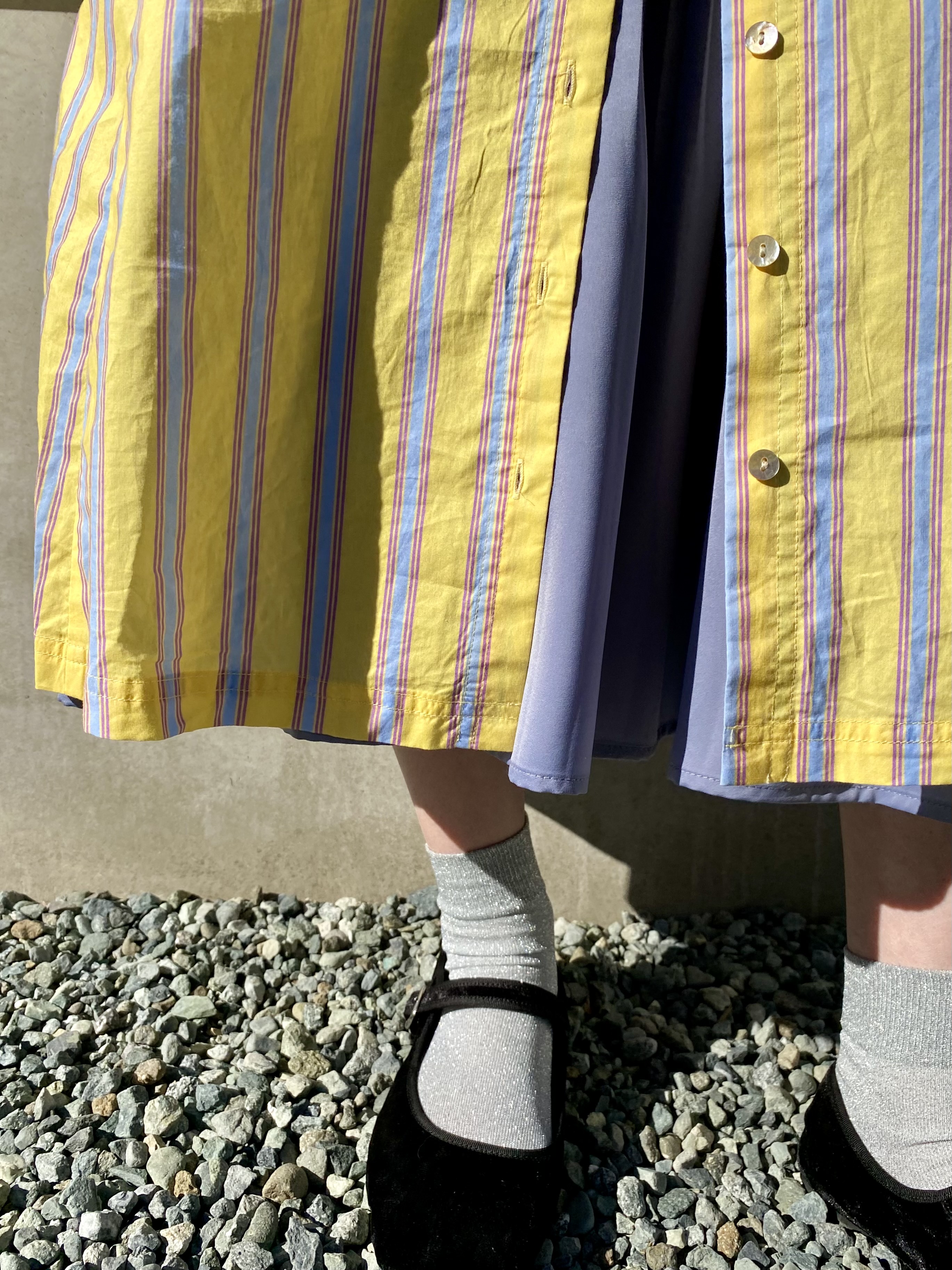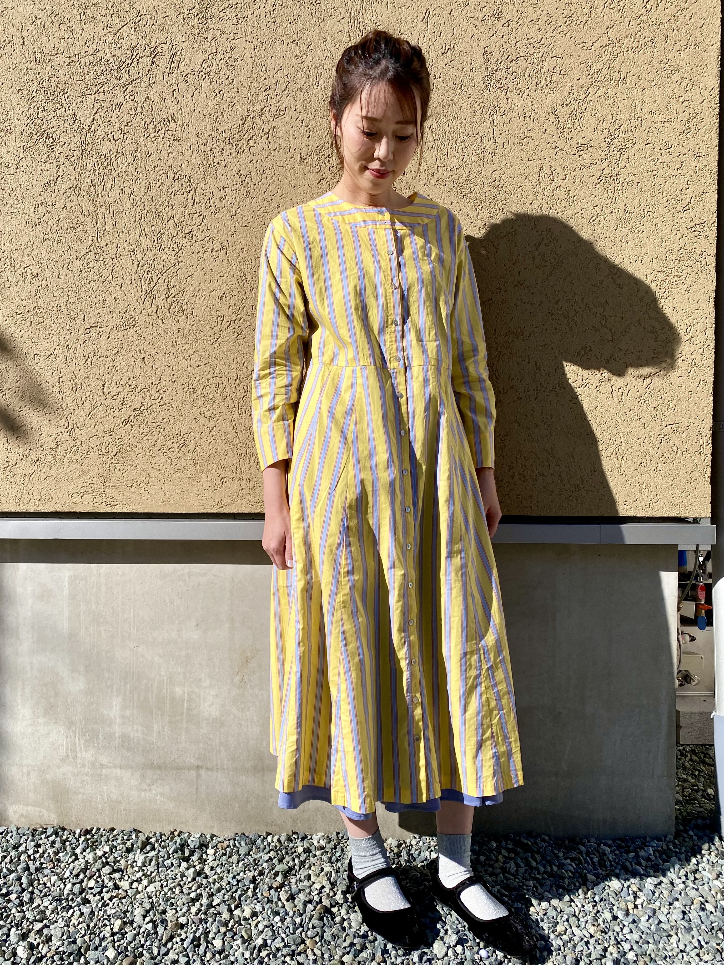 着るだけで楽しくなるイエローストライプのワンピースに