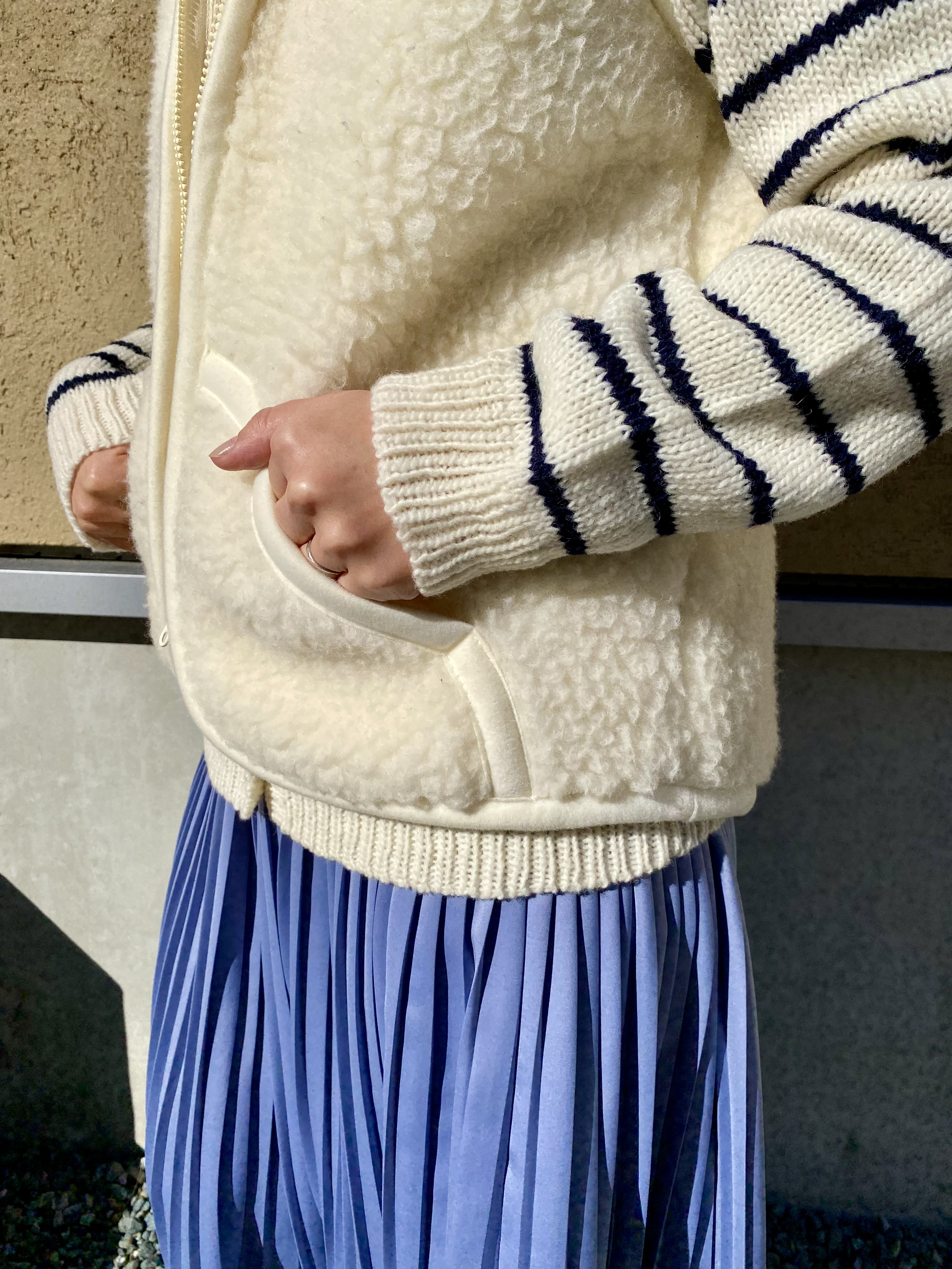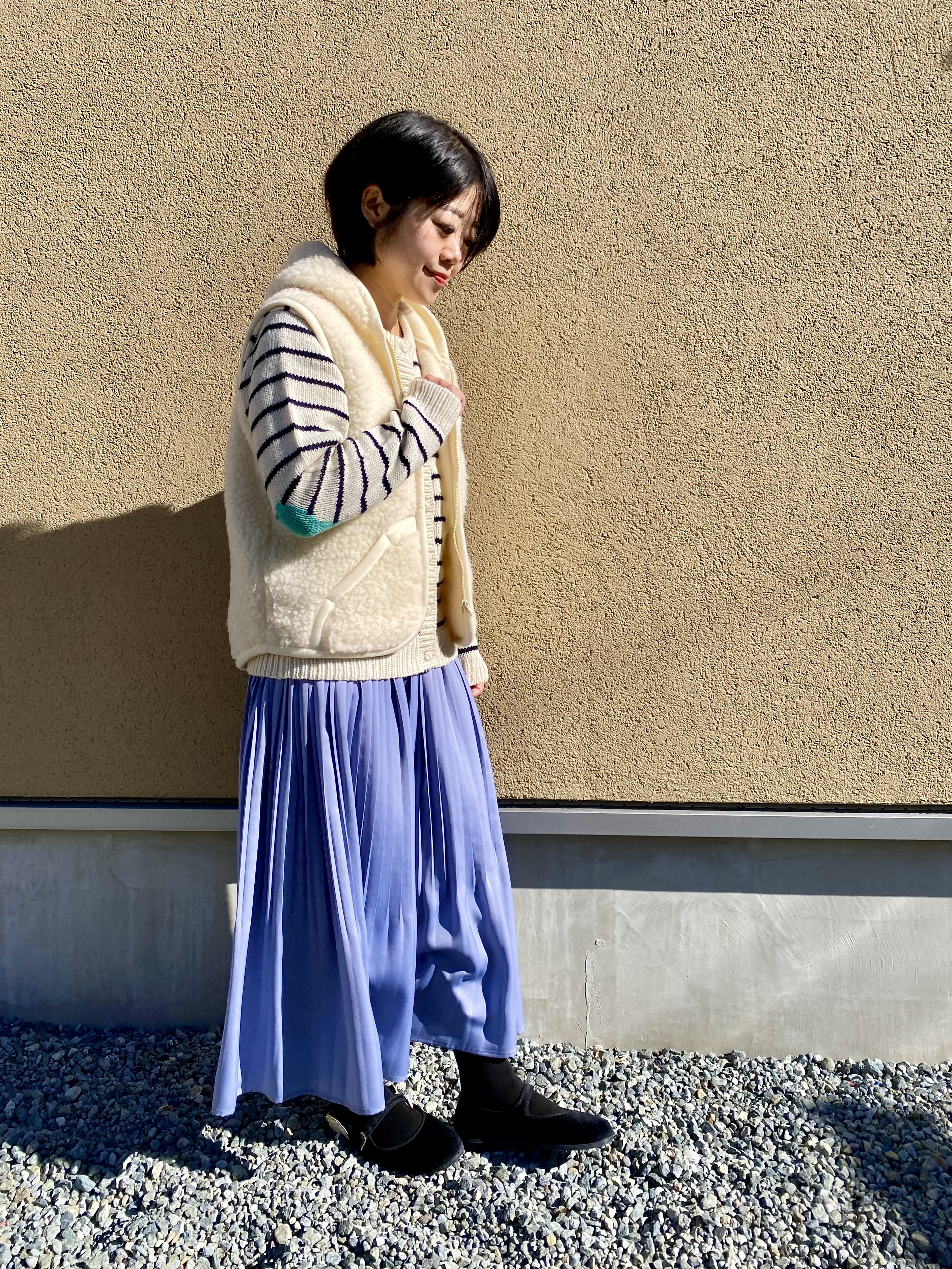 カラー合わせで魅せる大人なボアベストスタイル