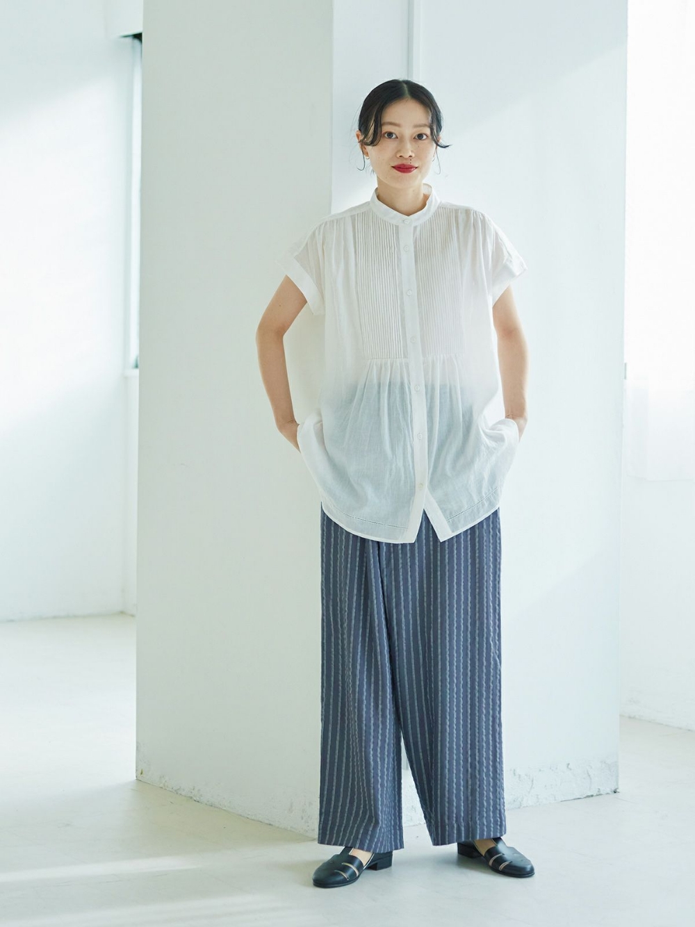 ーたっぷり入ったピンタックが贅沢。ふんわりと風を通す大人ブラウス。ー