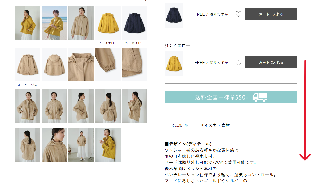 ☆商品ページを下の方向へスクロール
