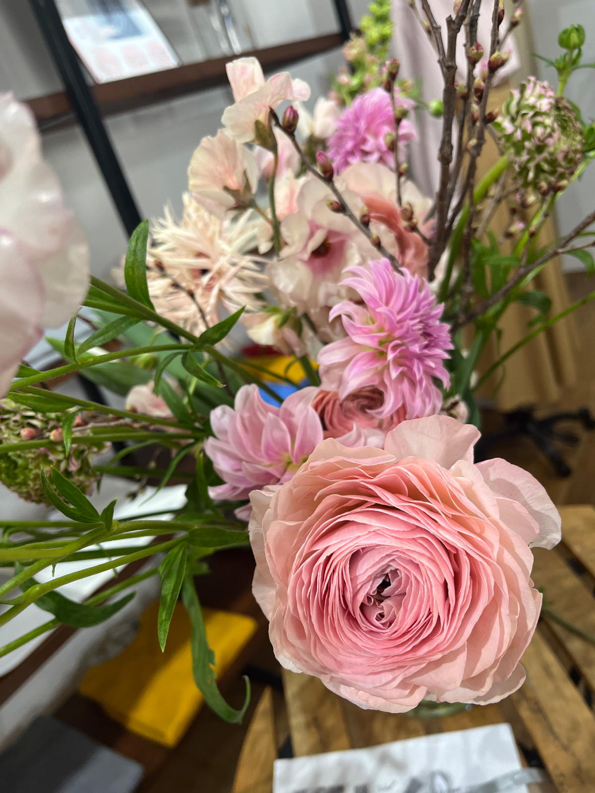 その日の朝に市場から仕入れていただいた、ラナンキュラス、チューリップ、