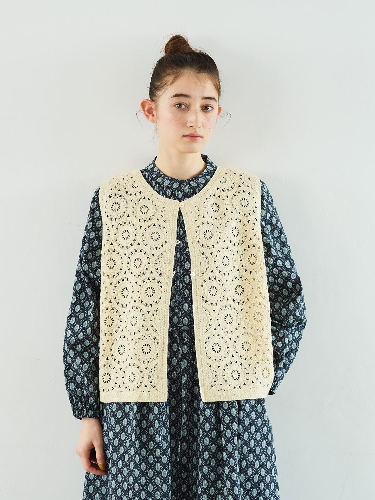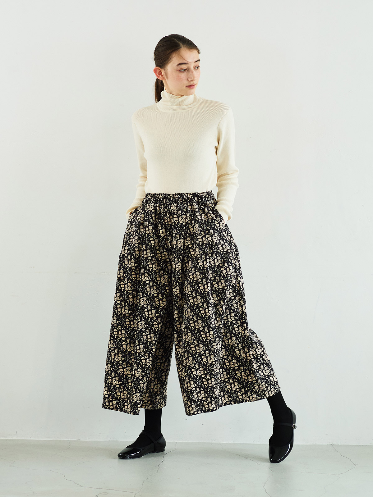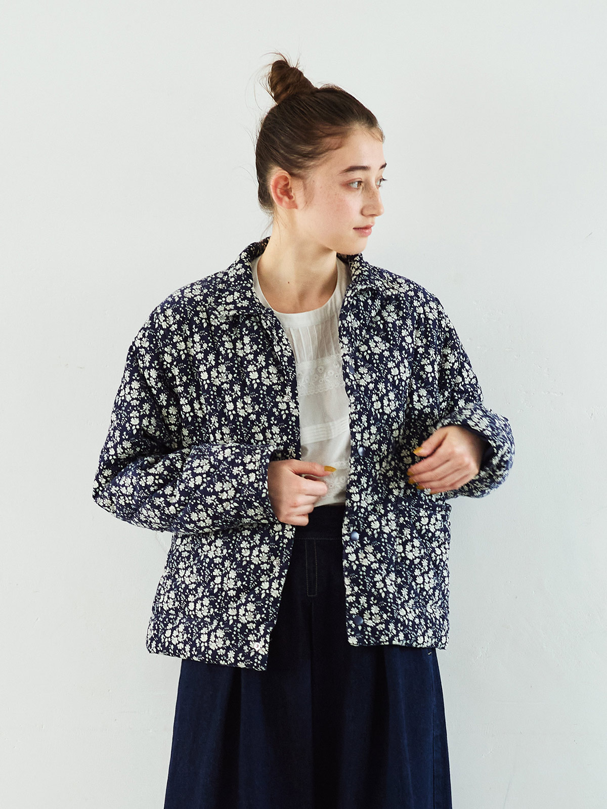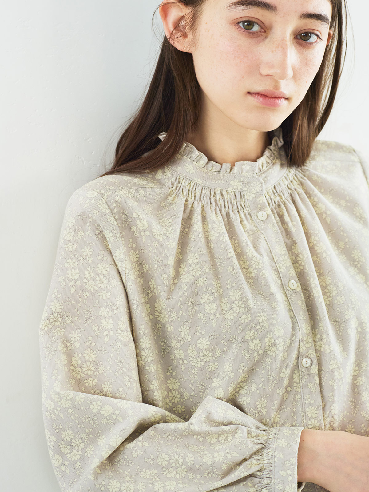 リバティコーデュロイ/バンドカラーウエストドロストワンピース