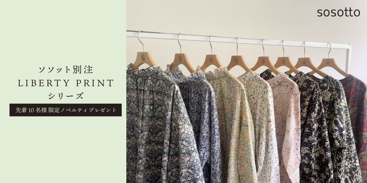 【直営店別注】リバティプリント/2WAY丸衿シャーリング袖ブラウス
