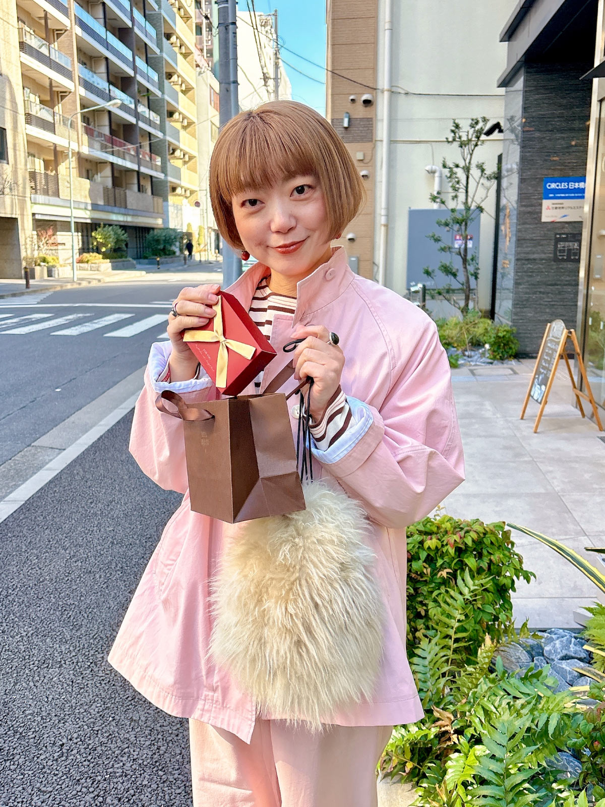 田中:3連休のお出かけは、バレンタインで着たピンクの