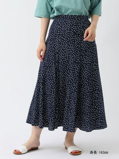 女性らしいシルエットが素敵なスカートでした。 届いた時の折りシワも一度の着用で自然になくなっていたのでサラッとシワになりにくい素材なのかな?と思いました。 ベージュベースのドット柄もあったらまた次回検討したいと思います。