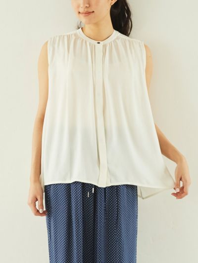 店員さんが勧めてくださって購入したのですが、本当に大正解でした!上品で、袖がないのでカーディガンを羽織った時脇もスッキリ着こなせます。二の腕の出方も腕の太さが目立たない裁断なのか、あまり気になりません。おすすめです。 -