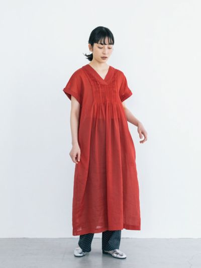 とても素敵なワンピースです!上品なレッドで胸元のウェーブピンタックが気に入っています。以前購入したペチパンツとも合わせてみたいです。 -