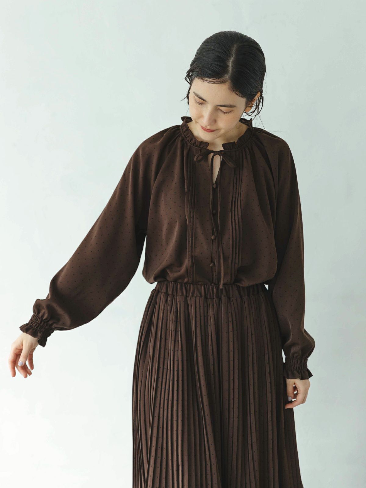 他の画像を見る 22452711 PONT DE CHALONS(ポンデシャロン) 【衿フリルにピンタックが印象的で1枚で様になる】2WAYフリルスタンドブラウス ¥ 12,100 税込 NEW カートに入れる お気に入りに登録する (3件)